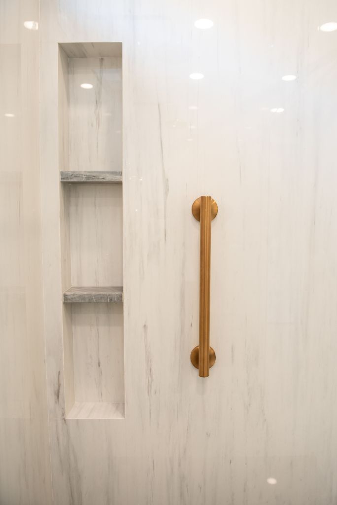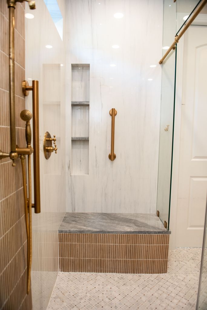 - Grab bars that are thoughtfully selected and installed to blend seamlessly with the overall design—offering support without sacrificing style