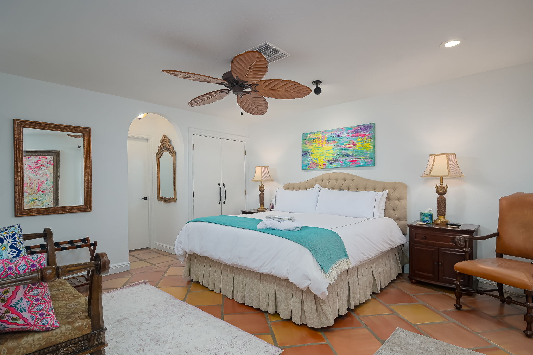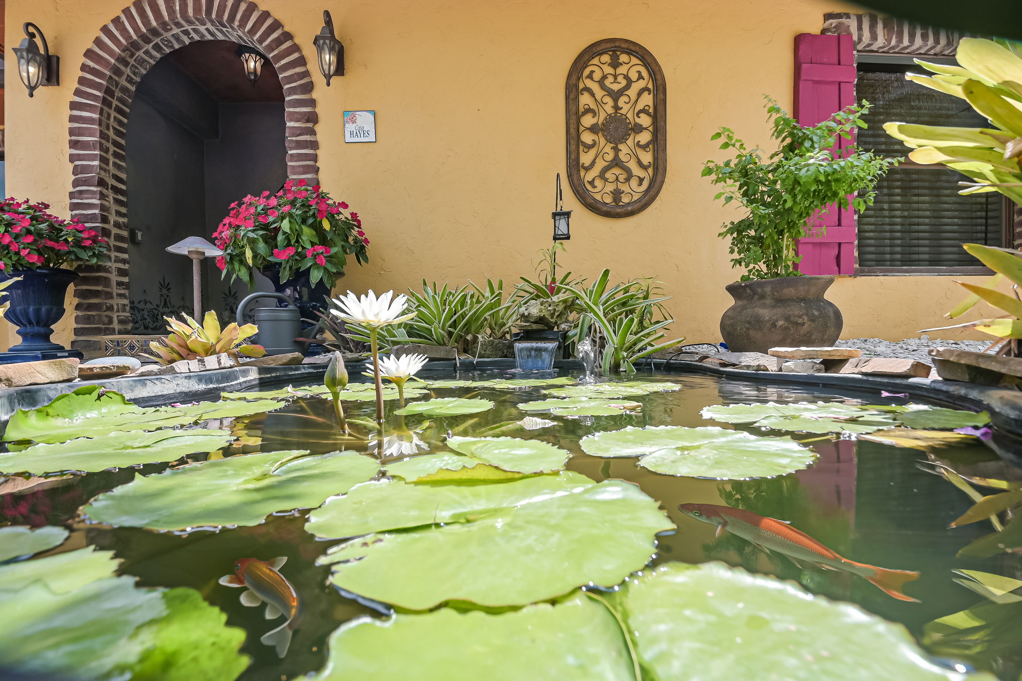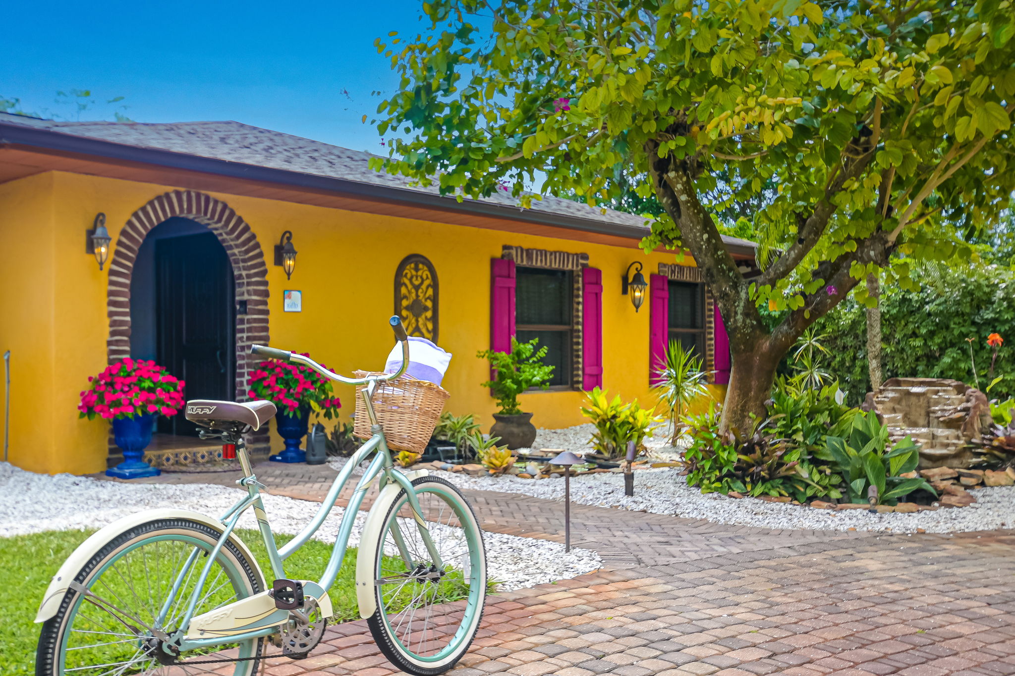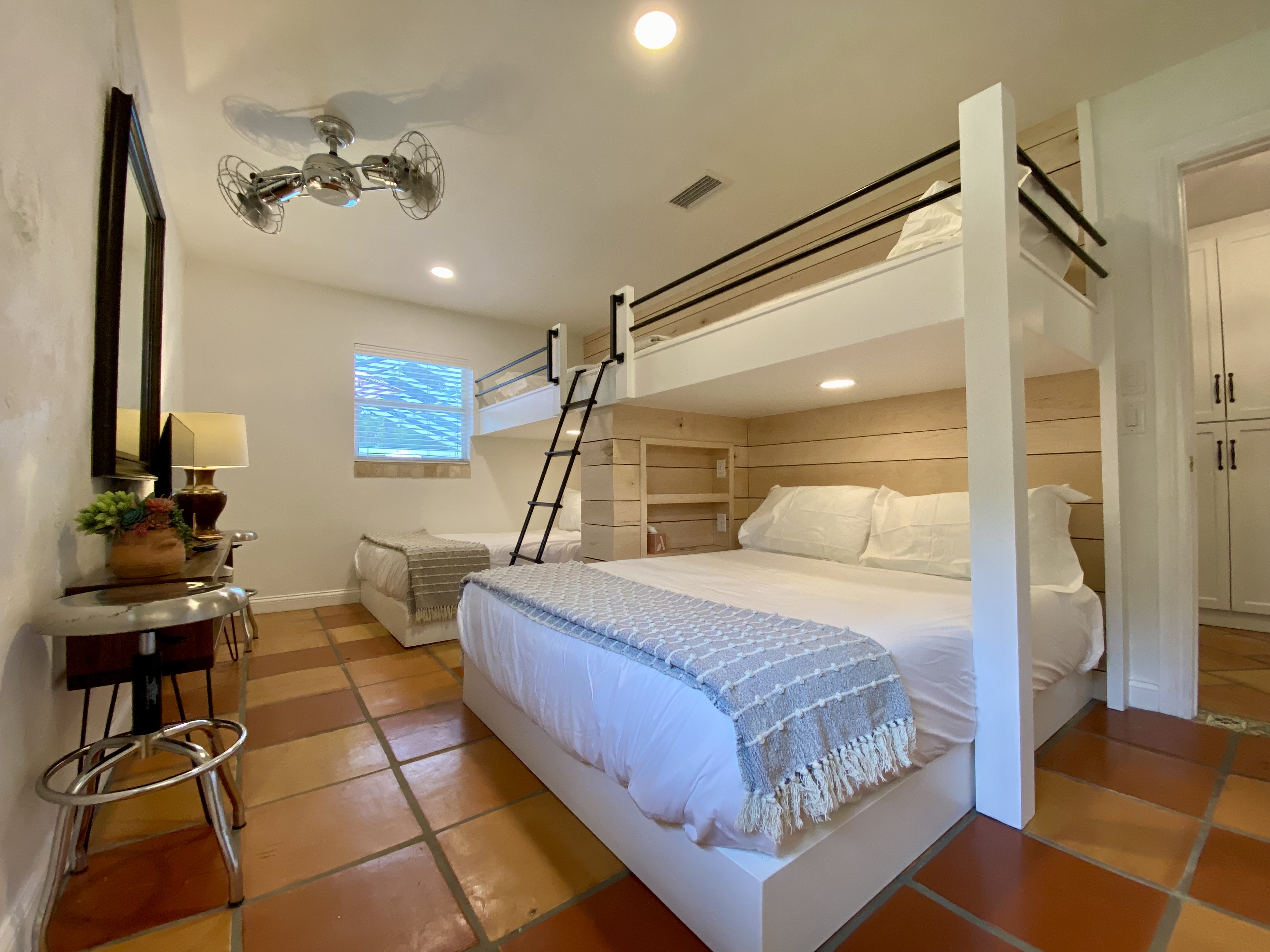 Experience the epitome of comfort with Frette brand sheets and duvets, renowned as the best in the world. The primary bedroom offers a spacious retreat with a king-size bed, while the second bedroom features a queen bed with tranquil views of the water fountain and garden. The “bunk room” comfortably sleeps six with two queen beds and two upper bunks, making it perfect for families or groups.