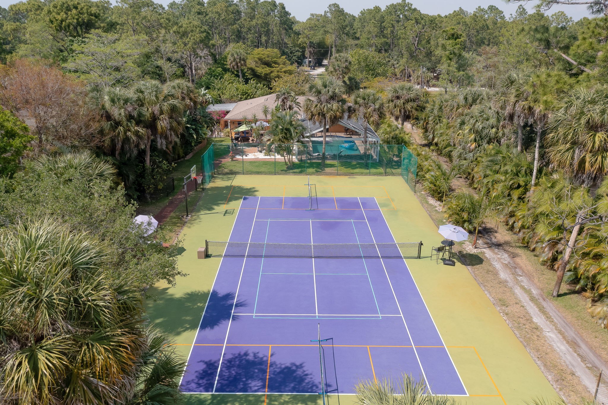 Sports Court: 1 Tennis Court, 2 Pickleball Courts, Basketball